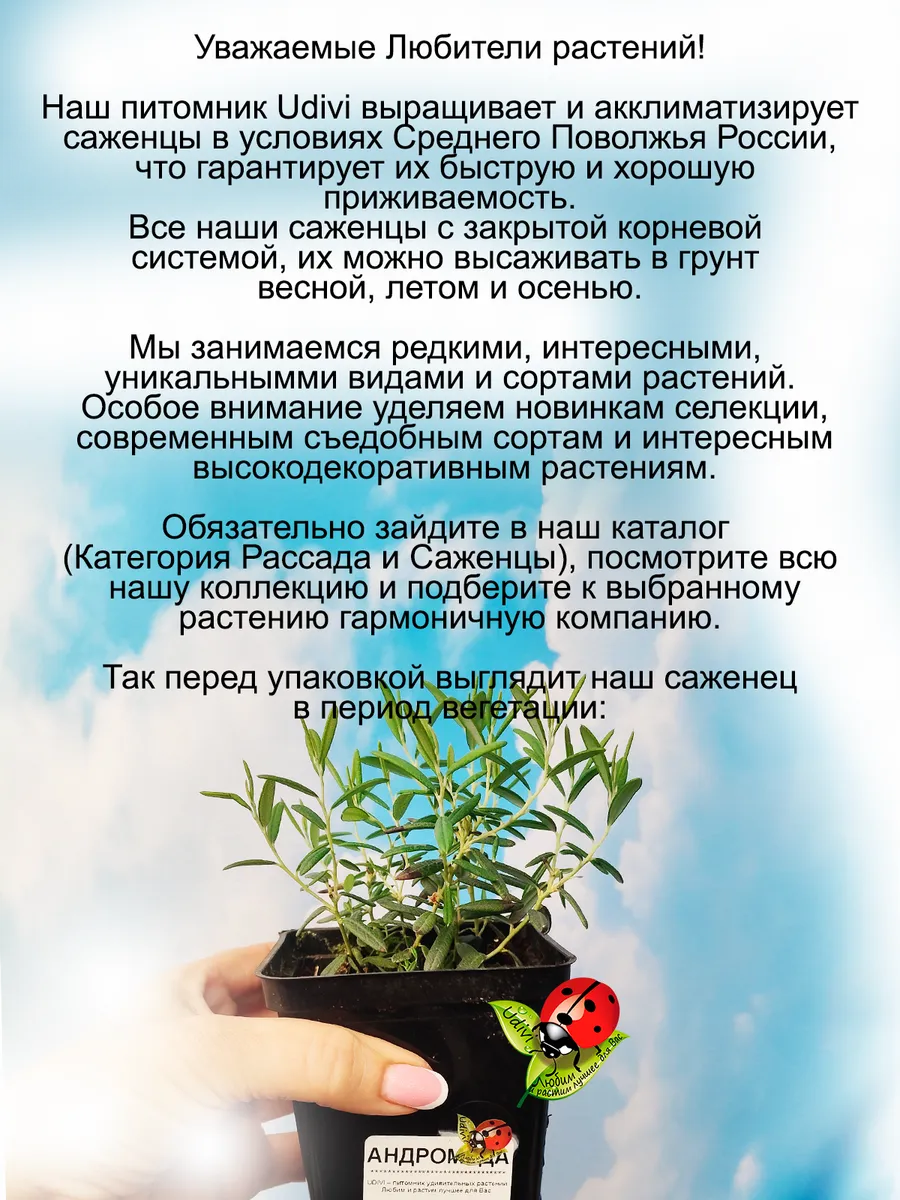 Внимание! Подробное описание конкретного растения, его название и характеристики смотрите на фотографиях карточки. Здесь ниже только общее описание выращиваемых нами растений. Всю информацию о нужном вам саженце читайте на фотографиях товара. Саженцы живых растений седумов и молодил - универсальное украшение вашего сада, которое все больше набирает популярность в ландшафтном дизайне. Рассада домашних цветов прекрасно приживается, это многолетнее растение, которое можно использовать и как цветы в горшках, и как уличные растения. Эти неприхотливые садовые цветы, создадут на даче и в саду в любое время года зеленый фон. Многолетники саженцы предназначены для открытого грунта, не сложные в уходе, поскольку они неукрывные, морозостойкие, зимостойкие, зимующие как в южных регионах, так и в средней полосе. Многие виды саженцев подходят и как почвопокровники и как ампельные растения, прекрасно борятся с сорняками – разрастаясь густым ковром, они вытесняют сорняки, а также устойчивы к вытаптыванию. Также мы разводим такие съедобные растения как малина жимолость ежевика актинидия ежемалина виноград брусника голубика годжи ягода молодости айва ревень земляника княженика современных сортов новейшей селекции. Также у нас есть маточники и мы размножаем вербейник лизимахия армерия, нам нравится клематис живучка, которая также в наших фаворитах коллизия и спирея, кроме того будра и традесканция неприхотливые ясколка лаванда и обриета восхитительно цветут и радуют глаз. Синеголовник очиток и мшанка красивы в любое время как и камнеломка, но есть в нашем хозяйстве и гипсофила роза алиссум крестовник, а гвоздика и оттона радуют нас вместе с арабисом как и шалфей. Гейхера и гортензия это фейерверк красок, множество сортов полыни и аптения вариегатная радуют глаз. Простая палитра – это клевер и горец. Очень любим пряные травы редких сортов чабрец тимьян красивая душица восхитительно смотрится на фоне мяты и орегано. Мы имеем злаков огромную коллекцию вейник и осока новых сортов