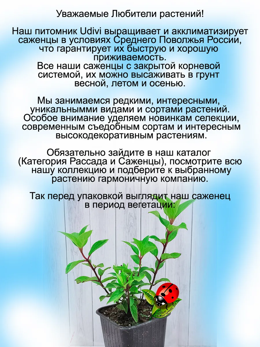 Внимание! Подробное описание конкретного растения, его название и характеристики смотрите на фотографиях карточки. Здесь ниже только общее описание выращиваемых нами растений. Всю информацию о нужном вам саженце читайте на фотографиях товара. Саженцы живых растений седумов и молодил - универсальное украшение вашего сада, которое все больше набирает популярность в ландшафтном дизайне. Рассада домашних цветов прекрасно приживается, это многолетнее растение, которое можно использовать и как цветы в горшках, и как уличные растения. Эти неприхотливые садовые цветы, создадут на даче и в саду в любое время года зеленый фон. Многолетники саженцы предназначены для открытого грунта, не сложные в уходе, поскольку они неукрывные, морозостойкие, зимостойкие, зимующие как в южных регионах, так и в средней полосе. Многие виды саженцев подходят и как почвопокровники и как ампельные растения, прекрасно борятся с сорняками – разрастаясь густым ковром, они вытесняют сорняки, а также устойчивы к вытаптыванию. Также мы разводим такие съедобные растения как малина жимолость ежевика актинидия ежемалина виноград брусника голубика годжи ягода молодости айва ревень земляника княженика современных сортов новейшей селекции. Также у нас есть маточники и мы размножаем вербейник лизимахия армерия, нам нравится клематис живучка, которая также в наших фаворитах коллизия и спирея, кроме того будра и традесканция неприхотливые ясколка лаванда и обриета восхитительно цветут и радуют глаз. Синеголовник очиток и мшанка красивы в любое время как и камнеломка, но есть в нашем хозяйстве и гипсофила роза алиссум крестовник, а гвоздика и оттона радуют нас вместе с арабисом как и шалфей. Гейхера и гортензия это фейерверк красок, множество сортов полыни и аптения вариегатная радуют глаз. Простая палитра – это клевер и горец. Очень любим пряные травы редких сортов чабрец тимьян красивая душица восхитительно смотрится на фоне мяты и орегано. Мы имеем злаков огромную коллекцию вейник и осока новых сортов