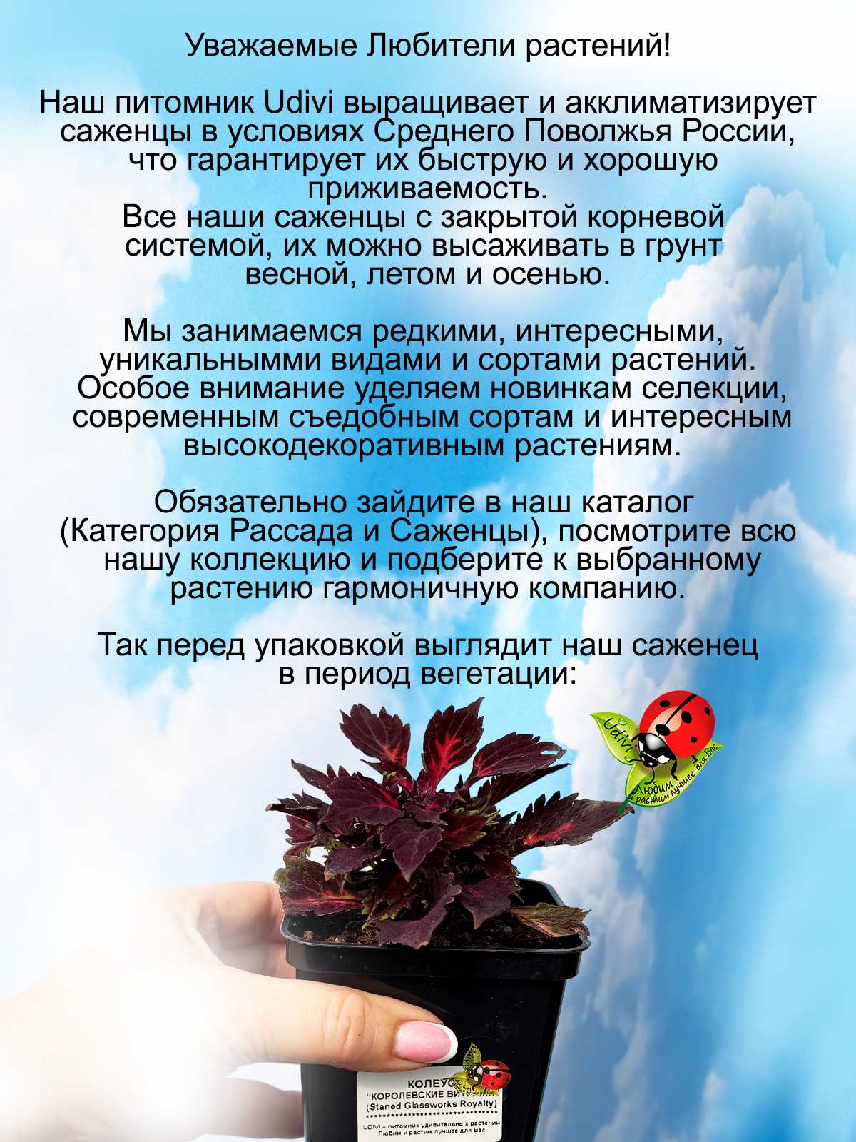 Внимание! Подробное описание конкретного товара, его название и характеристики смотрите на фотографиях карточки. Здесь ниже только общее описание выращиваемых нами растений. Всю информацию о нужном вам товаре читайте на фотографиях товара. Саженцы живых растений плодовых, декоративных цветов, седумов и молодил - универсальное украшение вашего сада, которое все больше набирает популярность в ландшафтном дизайне. Рассада домашних цветов прекрасно приживается, это многолетнее растение, которое можно использовать как цветы в горшках, и как уличное растение. Эти неприхотливые садовые цветы, создадут на даче и в саду в любое время года зеленый фон. Многолетники предназначены для открытого грунта, поскольку они не укрывные, морозостойкие, зимостойкие, зимующие как в южных регионах, так и в средней полосе. Многие виды саженцев подходят и как почвопокровники и как ампельные растения, прекрасно борятся с сорняками, разрастаясь густым ковром, они вытесняют сорняки, а также устойчивы к вытаптыванию. Также разводим такие съедобные растения как малина жимолость ежевика актинидия ежемалина виноград брусника голубика годжи ягода молодости айва ревень земляника княженика современных сортов новейшей селекции. Также у нас есть маточники и мы размножаем вербейник лизимахия армерия, нам нравится клематис живучка, которая также в наших фаворитах коллизия и спирея, кроме того будра и традесканция неприхотливые ясколка лаванда и обриета восхитительно цветут и радуют глаз. Синеголовник очиток и мшанка очень красивы в любое время как и камнеломка, но есть в нашем хозяйстве и гипсофила роза алиссум крестовник, а гвоздика и оттона радуют нас вместе с арабисом, как и шалфей. Гейхера и гортензия это фейерверк красок, множество сортов полыни и аптения вариегатная радуют глаз. Простая палитра – это клевер и горец. Очень любим пряные травы редких сортов чабрец тимьян красивая душица восхитительно смотрится на фоне мяты и орегано. Мы имеем огромную коллекцию злаков вейник и прекрасная осока.