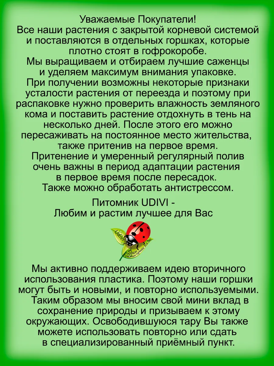 Внимание! Подробное описание конкретного товара, его название и характеристики смотрите на фотографиях карточки. Здесь ниже только общее описание выращиваемых нами растений. Всю информацию о нужном вам товаре читайте на фотографиях товара.
