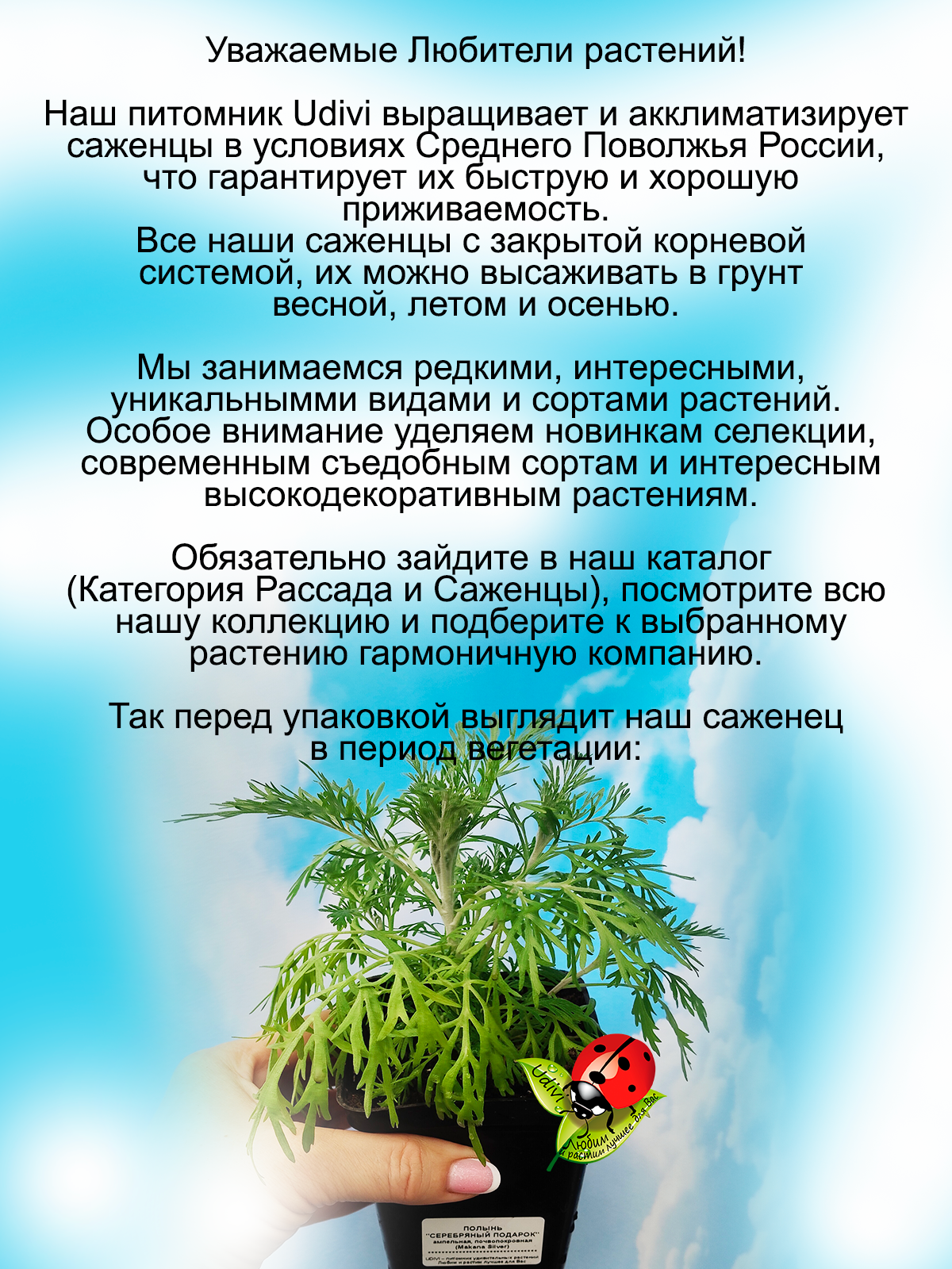 Внимание! Подробное описание конкретного растения, его название и характеристики смотрите на фотографиях карточки. Здесь ниже только общее описание выращиваемых нами растений. Всю информацию о нужном вам саженце читайте на фотографиях товара. Саженцы живых растений седумов и молодил - универсальное украшение вашего сада, которое все больше набирает популярность в ландшафтном дизайне. Рассада домашних цветов прекрасно приживается, это многолетнее растение, которое можно использовать и как цветы в горшках, и как уличные растения. Эти неприхотливые садовые цветы, создадут на даче и в саду в любое время года зеленый фон. Многолетники саженцы предназначены для открытого грунта, не сложные в уходе, поскольку они неукрывные, морозостойкие, зимостойкие, зимующие как в южных регионах, так и в средней полосе. Многие виды саженцев подходят и как почвопокровники и как ампельные растения, прекрасно борятся с сорняками – разрастаясь густым ковром, они вытесняют сорняки, а также устойчивы к вытаптыванию. Также мы разводим такие съедобные растения как малина жимолость ежевика актинидия ежемалина виноград брусника голубика годжи ягода молодости айва ревень земляника княженика современных сортов новейшей селекции. Также у нас есть маточники и мы размножаем вербейник лизимахия армерия, нам нравится клематис живучка, которая также в наших фаворитах коллизия и спирея, кроме того будра и традесканция неприхотливые ясколка лаванда и обриета восхитительно цветут и радуют глаз. Синеголовник очиток и мшанка красивы в любое время как и камнеломка, но есть в нашем хозяйстве и гипсофила роза алиссум крестовник, а гвоздика и оттона радуют нас вместе с арабисом как и шалфей. Гейхера и гортензия это фейерверк красок, множество сортов полыни и аптения вариегатная радуют глаз. Простая палитра – это клевер и горец. Очень любим пряные травы редких сортов чабрец тимьян красивая душица восхитительно смотрится на фоне мяты и орегано. Мы имеем злаков огромную коллекцию вейник и осока новых сортов