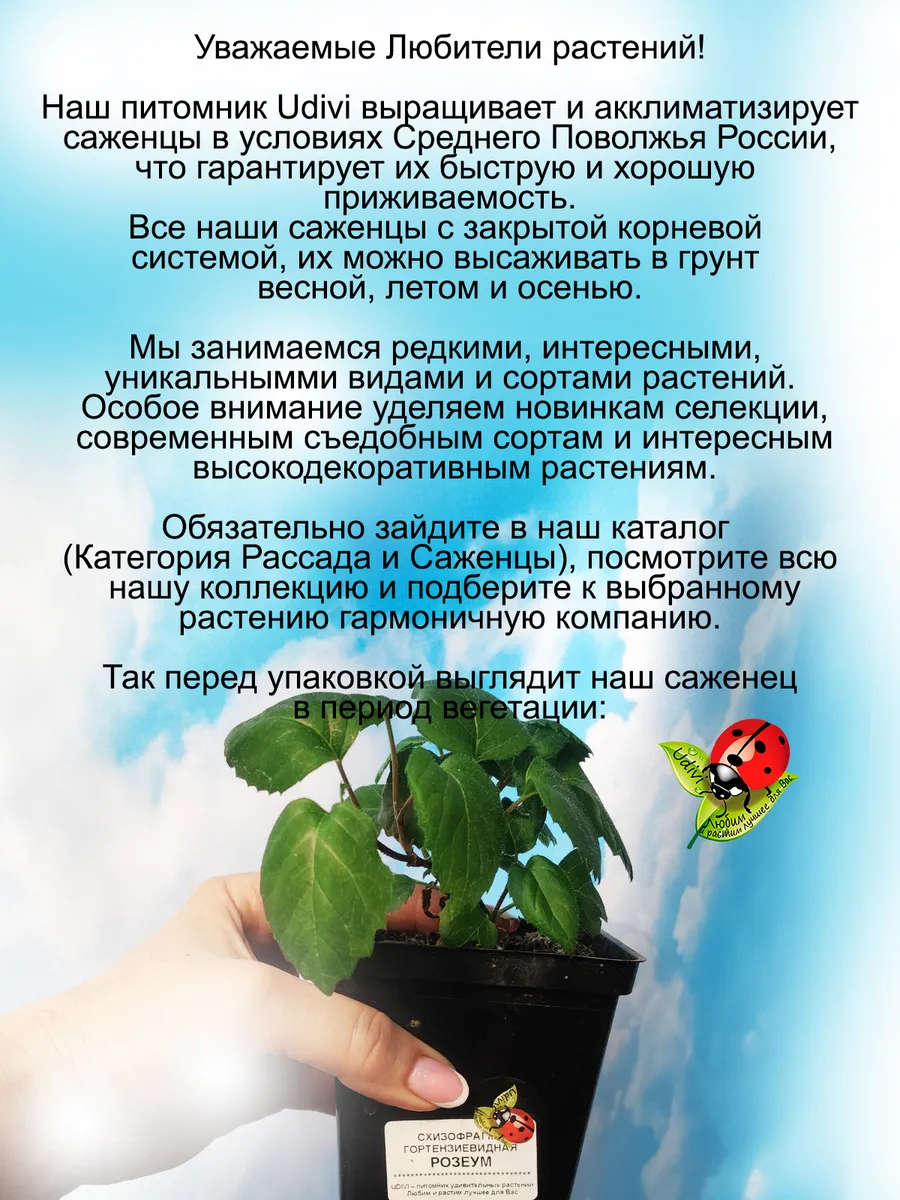 Внимание! Подробное описание конкретного растения, его название и характеристики смотрите на фотографиях карточки. Здесь ниже только общее описание выращиваемых нами растений. Всю информацию о нужном вам саженце читайте на фотографиях товара. Саженцы живых растений седумов и молодил - универсальное украшение вашего сада, которое все больше набирает популярность в ландшафтном дизайне. Рассада домашних цветов прекрасно приживается, это многолетнее растение, которое можно использовать и как цветы в горшках, и как уличные растения. Эти неприхотливые садовые цветы, создадут на даче и в саду в любое время года зеленый фон. Многолетники саженцы предназначены для открытого грунта, не сложные в уходе, поскольку они неукрывные, морозостойкие, зимостойкие, зимующие как в южных регионах, так и в средней полосе. Многие виды саженцев подходят и как почвопокровники и как ампельные растения, прекрасно борятся с сорняками – разрастаясь густым ковром, они вытесняют сорняки, а также устойчивы к вытаптыванию. Также мы разводим такие съедобные растения как малина жимолость ежевика актинидия ежемалина виноград брусника голубика годжи ягода молодости айва ревень земляника княженика современных сортов новейшей селекции. Также у нас есть маточники и мы размножаем вербейник лизимахия армерия, нам нравится клематис живучка, которая также в наших фаворитах коллизия и спирея, кроме того будра и традесканция неприхотливые ясколка лаванда и обриета восхитительно цветут и радуют глаз. Синеголовник очиток и мшанка красивы в любое время как и камнеломка, но есть в нашем хозяйстве и гипсофила роза алиссум крестовник, а гвоздика и оттона радуют нас вместе с арабисом как и шалфей. Гейхера и гортензия это фейерверк красок, множество сортов полыни и аптения вариегатная радуют глаз. Простая палитра – это клевер и горец. Очень любим пряные травы редких сортов чабрец тимьян красивая душица восхитительно смотрится на фоне мяты и орегано. Мы имеем злаков огромную коллекцию вейник и осока новых сортов